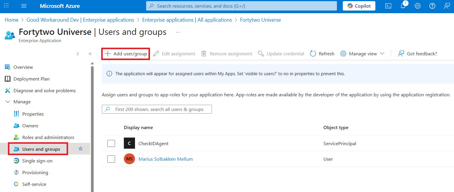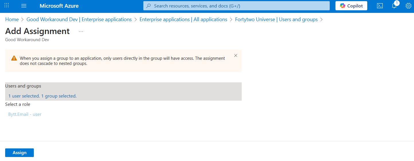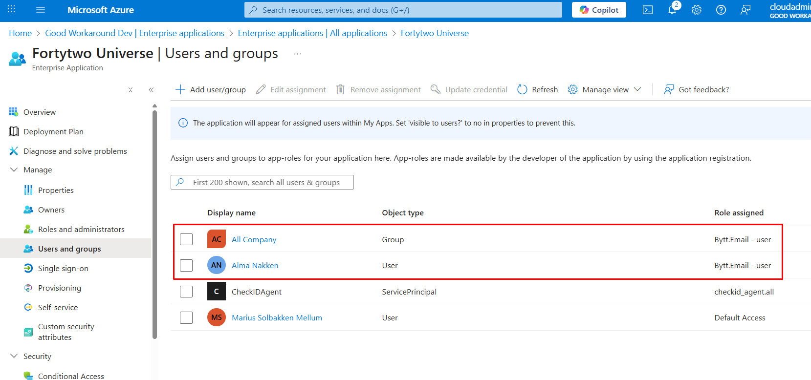 The assignments should now look like this. Notice that if you utilize other Fortytwo services, these role assignments are also managed here.