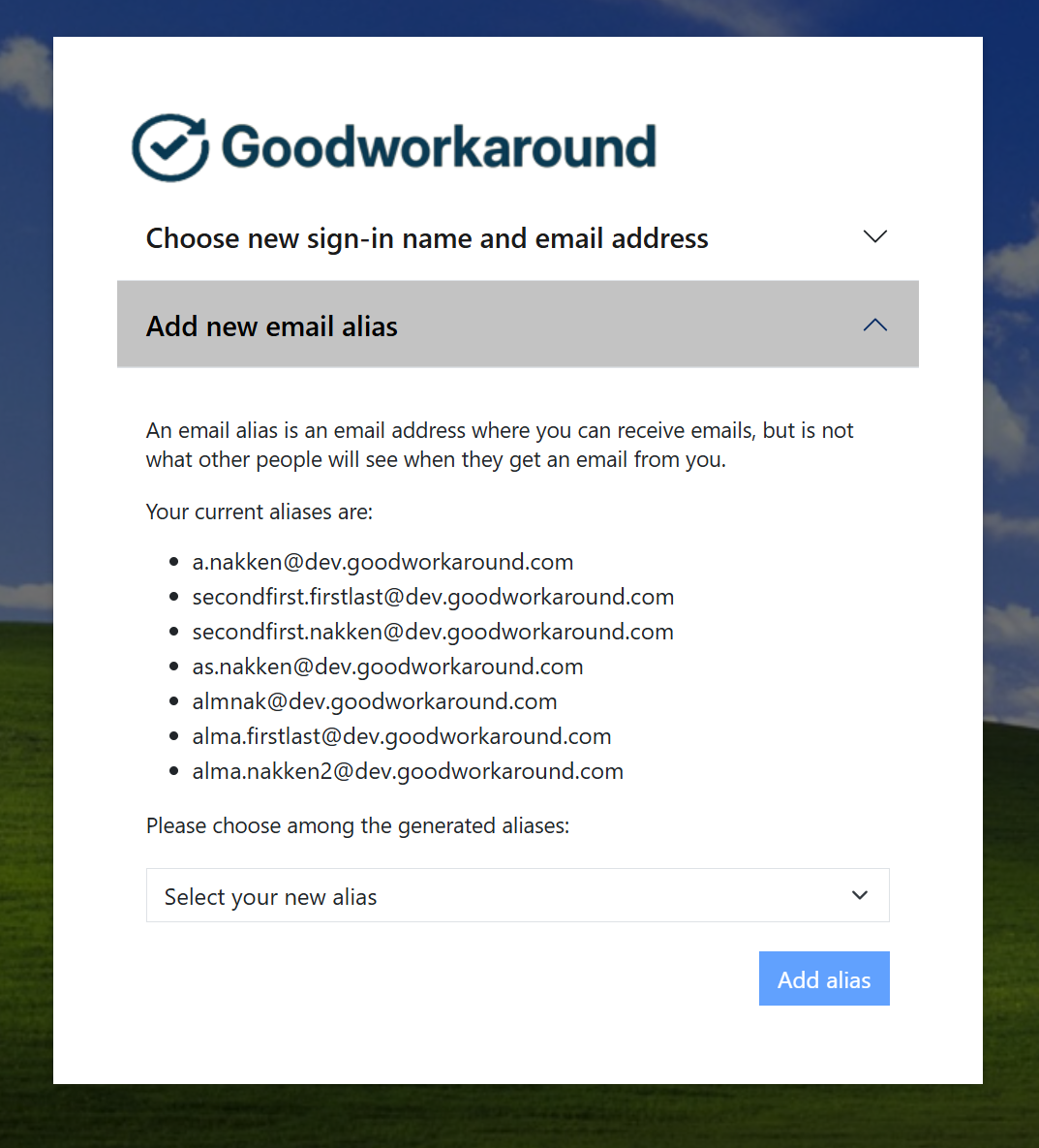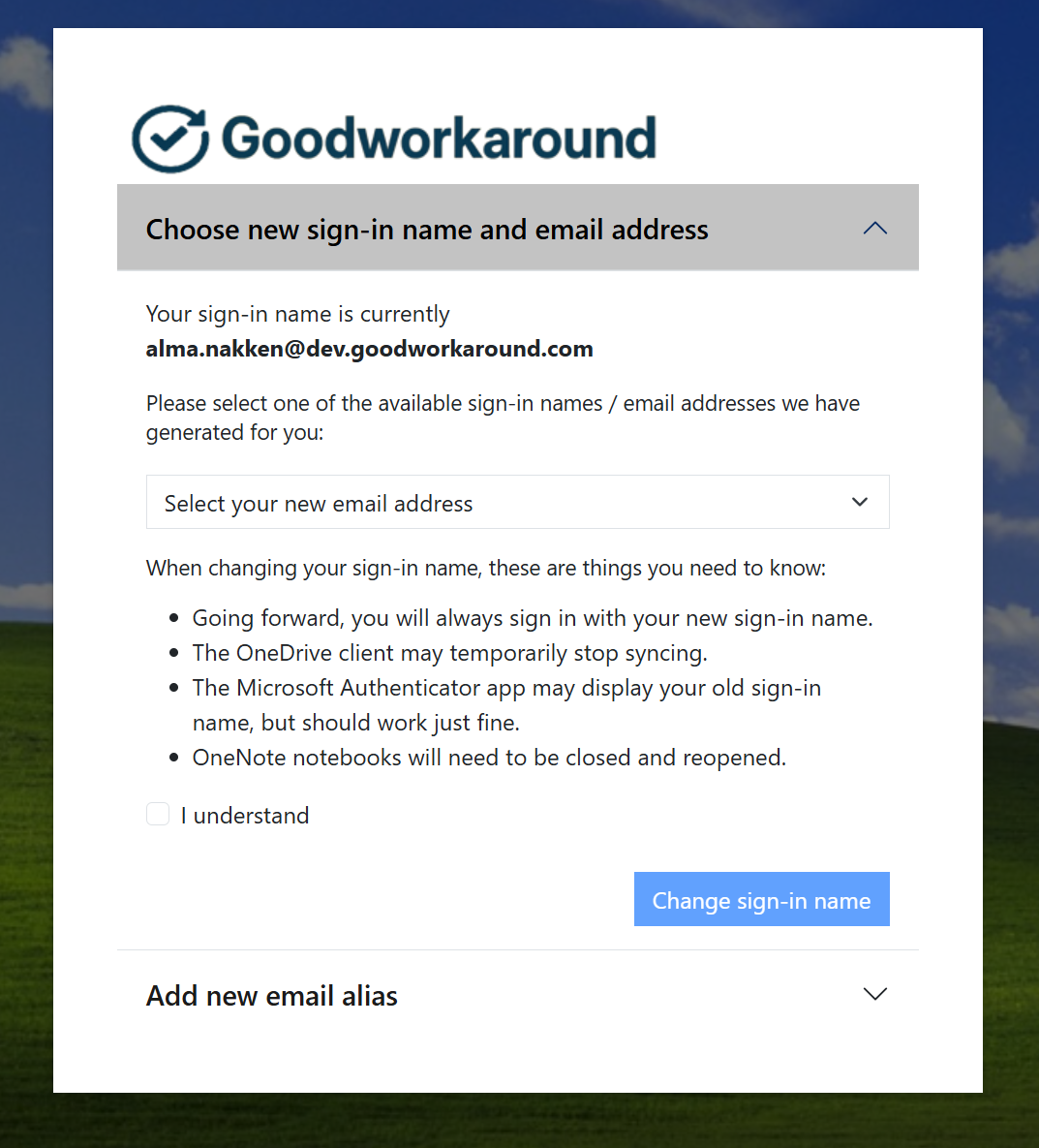 The user can be show option for changing their sign-in name and adding aliases, depending on configuration: