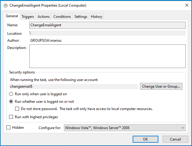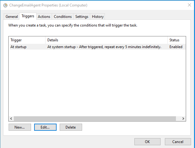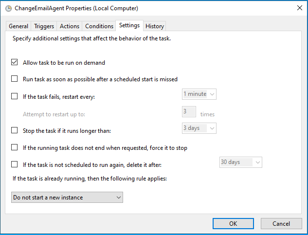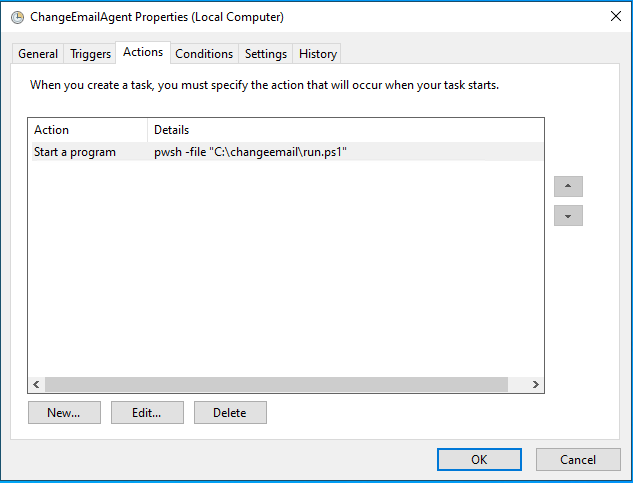 Step 5 - Run the ChangeEmail agent as a scheduled task¶