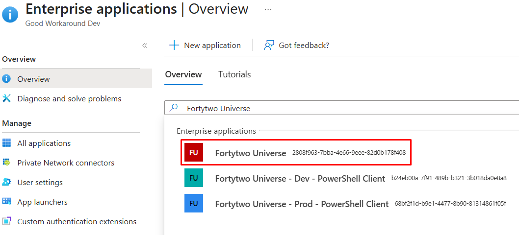 - Search for Fortytwo Universe and find the app with the id starting with 2808f963