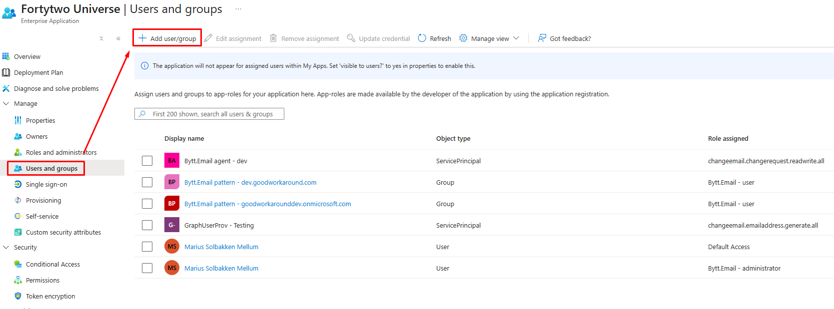 - Under Users and groups, click Add user/group